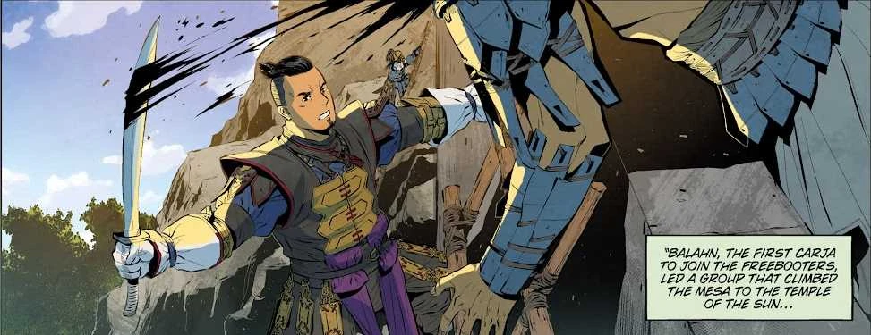 Im HZD-Comic 2 "Liberation" wird erzählt, dass Balahn der erste Carja-Offizier war, der sich von Sonnenkönig Jiran lossagte und zu Kronprinz Avad überlief, zusammen mit seiner gesamten Kompanie. Er führte während der ersten Schlacht um Meridian den Angriff auf den Sonnentempel selbst.