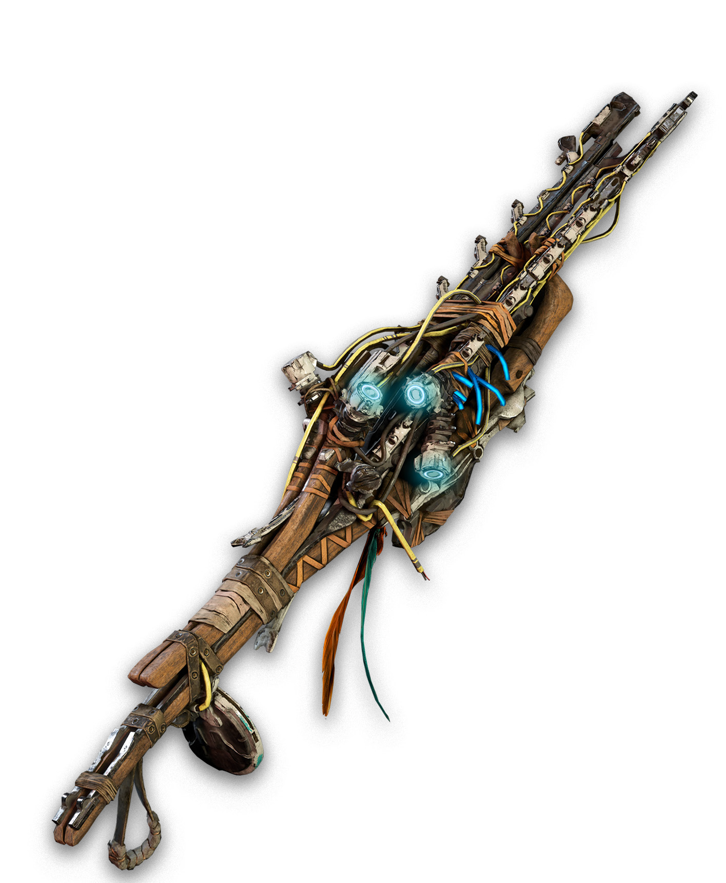 - Как и у двух других орудий, эксклюзивных для The Frozen Wilds, Ледошипа и Пламени Горна, изначальная форма буревика предположительно адаптирована для рукопашного боя, так как оно выступает и в качестве копья шамана Оуреи. Однако усовершенствованная версия оружия сконструирована Варгой исключительно для ведения боя на расстоянии.