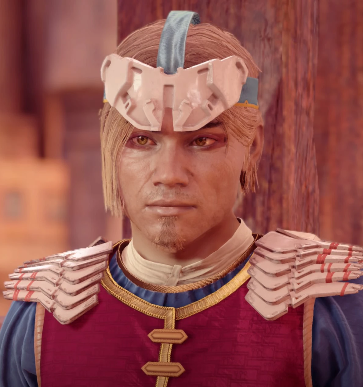 Киндив мужчина среднего возраста. У него светлые волосы, спадающие с налобной повязки до щек, медные глаза и легкая небритость на лице, на котором уже заметны морщины, выдающие его возраст. Как и многие представители его племени, он носит яркую одежду.