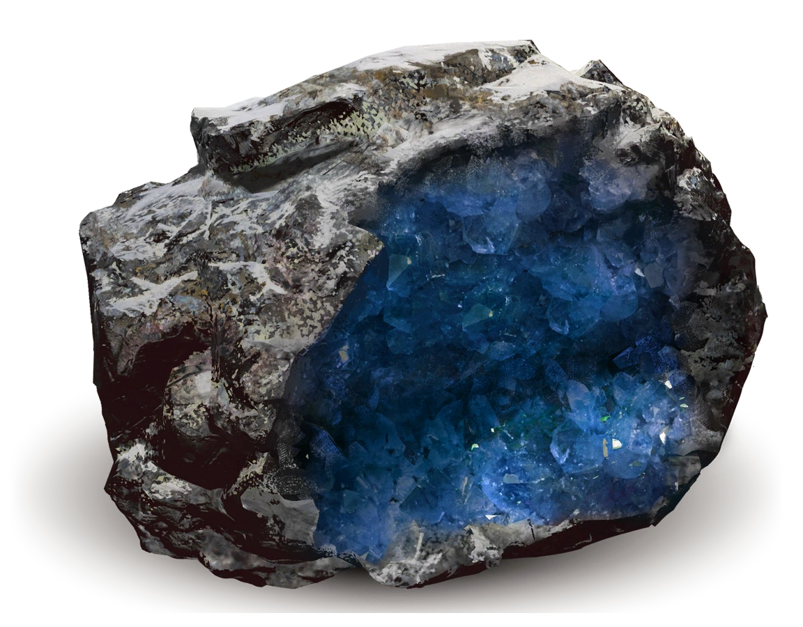 Кристаллическое образование. | Этот пигмент находится высоко на скале к северу от лагеря разбойников: Камнепад рядом с тремя образованиями синих самоцветов и носителем данных Последний ужин Лафайеттов. | ![]()