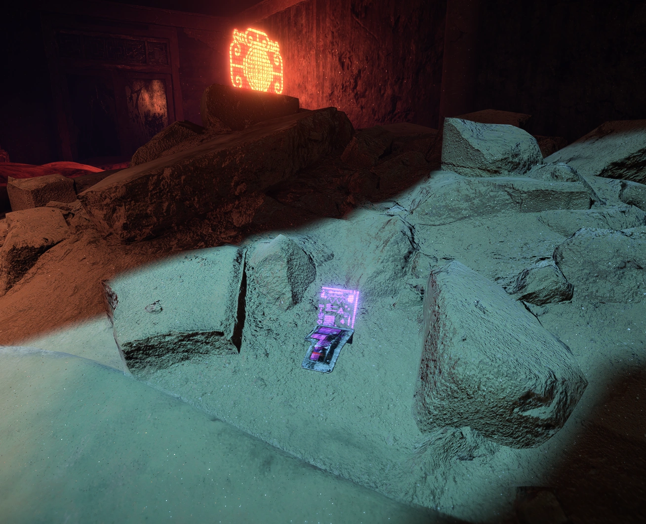 This datapoint is located in the Dunehollow, in the room with statue of a dragon which is visited during Lofty Ambitions. The datapoint is located on the floor directly behind the statue.