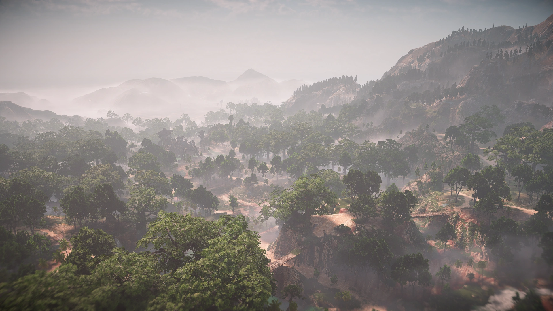 The southwestern part of the Clan Lands are the Lowlands, home to the Lowland Clan. The Lowland region stretches from the center of the Clan Lands where all three regions meet all the way to the coast in the southwest. A river also runs along this region. The Lowlands are mainly composed of lush rainforests and jungles with cliffs and waterfalls in the east and humid swamps by the coasts, where the Lowland Clan’s capital, Thornmarsh is located. The southern coast is mainly composed of mountainous cliffs along sandy beaches, while the northwestern coast is bordered by a large pine forest and the mountains from the Mountains Region.