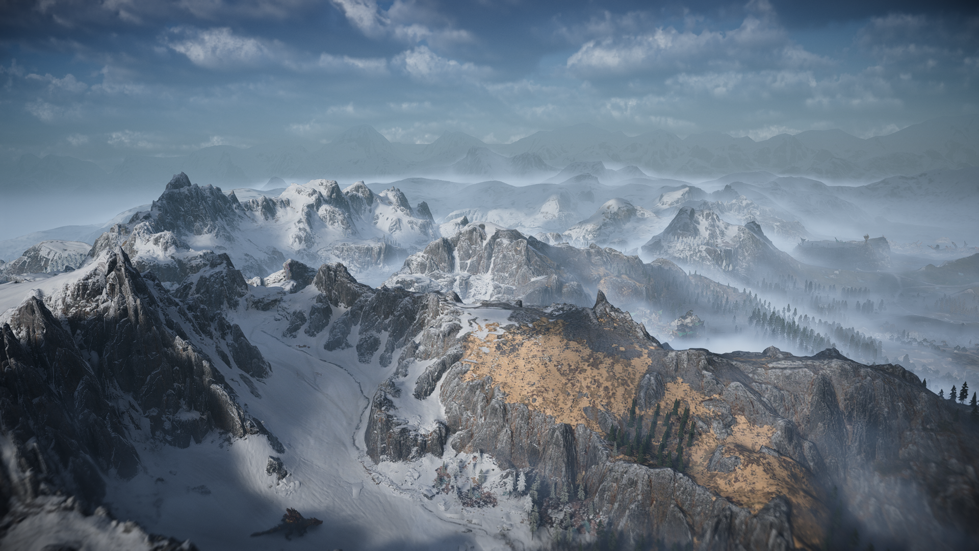 The northwestern part of the Clan Lands are the Sheerside Mountains, home to the Sky Clan. This region is mainly composed of a giant snow mountain chain in the center which can be hard to navigate. Because of this, the Sky Clan mostly resides in the valley in the northern part of the region where the clan’s capital, The Bulwark, is located. The region also features a little valley with fields of flowers, trees and a lake in the eastern part by the foot of the mountains.