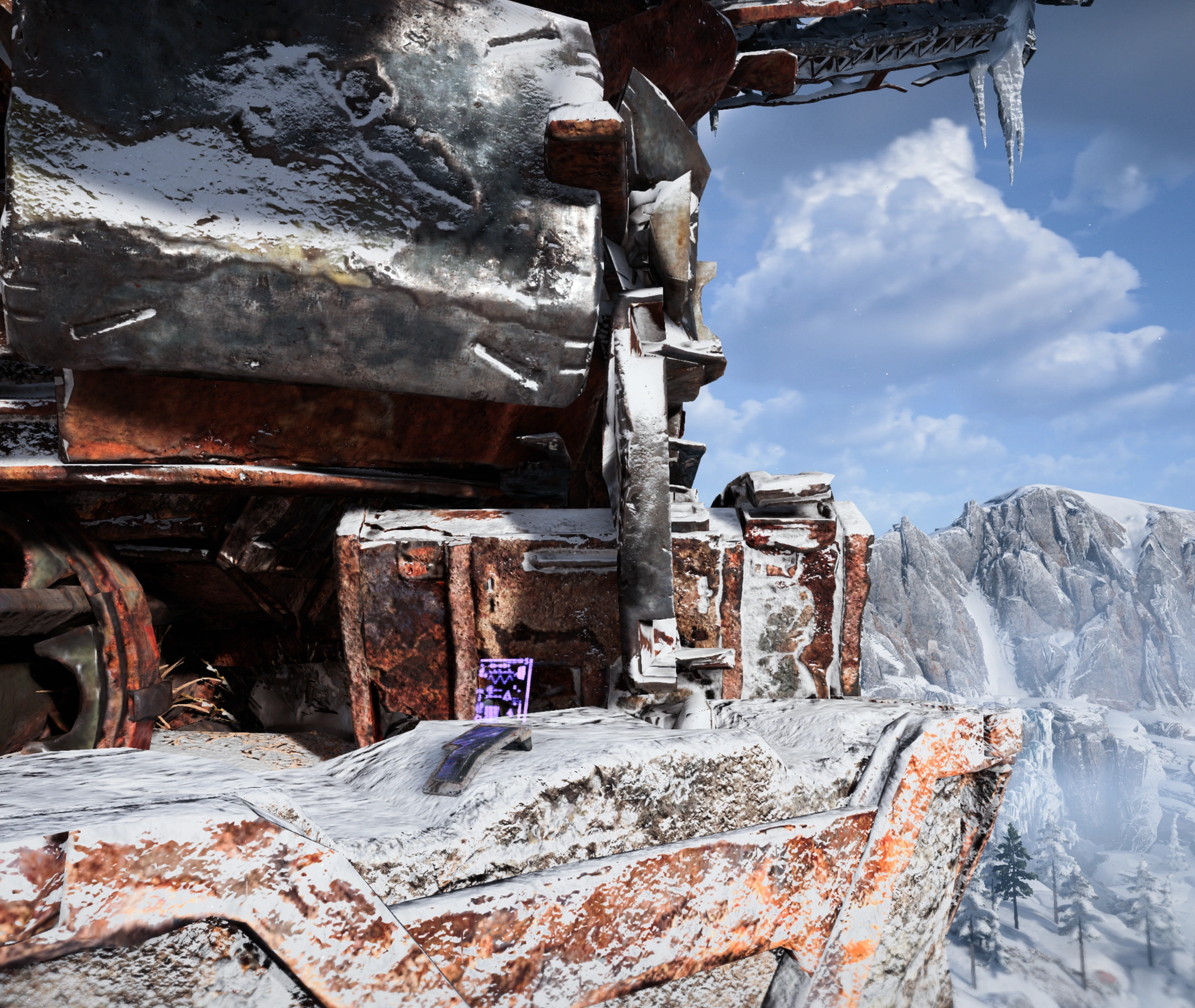 This datapoint is found at the base of a rusted anti-aircraft gun, west of Sky's Sentry, along a path that branches off from the path that leads to the Slaughterspine site and the survey drone. Go to the second gun.