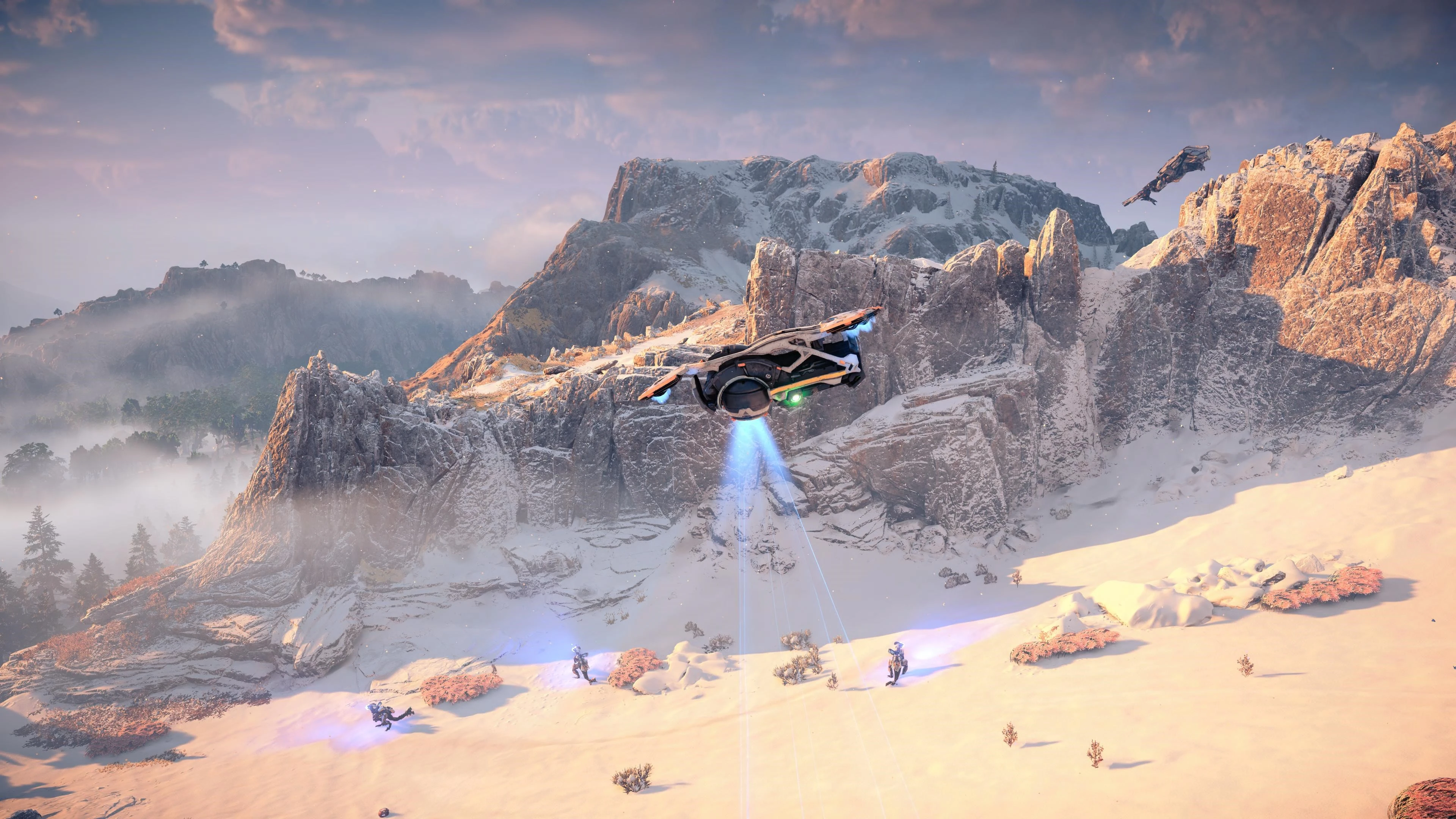 The scene of the Sunwing flying over Aloy, Varl, Beta and GAIA's transport rig while traveling to Cauldron GEMINI appears in the Story Trailer for Horizon Forbidden West. However, Beta, as well as GAIA's transport rig and Charger are absent.[68] While unconfirmed, they may have been removed specifically for the trailer in order to avoid spoilers.