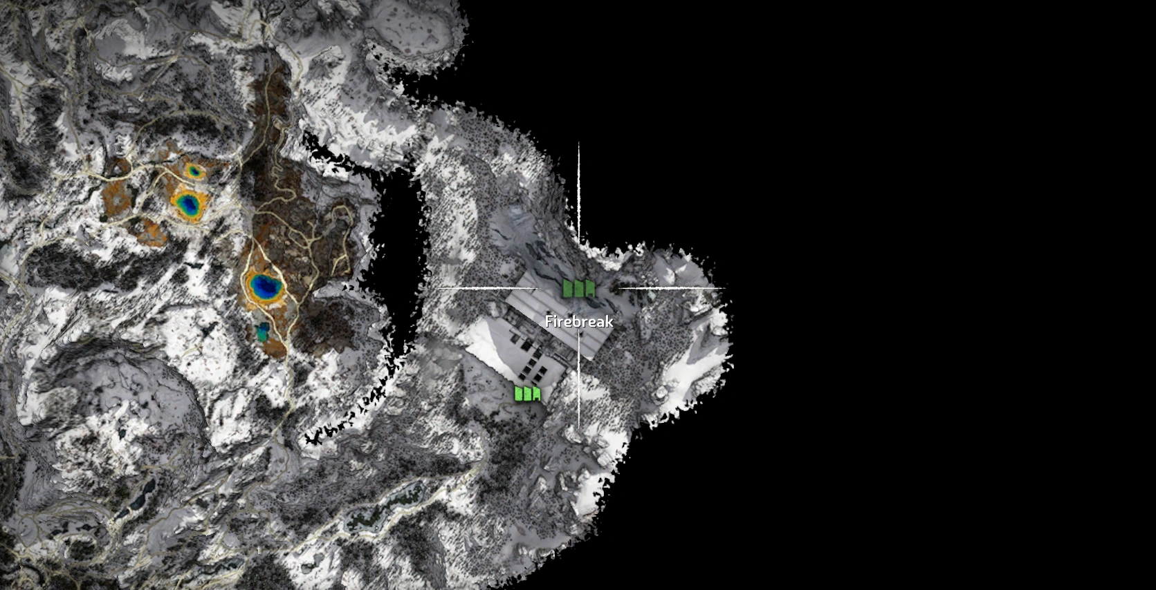 Firebreak is an ancient ruin in Horizon Zero Dawn: The Frozen Wilds. It is located on a mountain in the Banuk region known as The Cut, in what used to be Yellowstone National Park. The mountain is known as Thunder’s Drum. The ruin is in fact the remains of the ancient facility that housed the 21st century project known as Firebreak.
