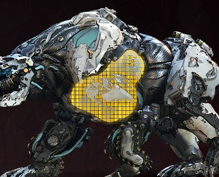As they were navigating the Firebreak facility to reach Cauldron EPSILSON, Aloy, Aratak and Ourea either fight and destroy or sneak past a Frostclaw.[5] Within the Cauldron, the three of them saw several inactive Frostclaws being transported on an assembly line and can potentially release and destroy two more. As Aloy overrode EPSILSON's core, she gained access to the information needed to override Frostclaws.[6]