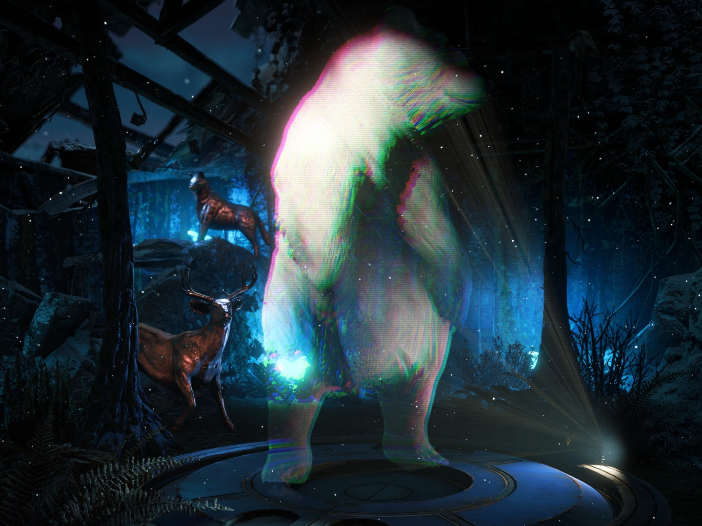 Long before the Faro Plague, the location that came to be known as Hollow Hall was the Visitor Center in Yellowstone National Park.[2] It was operated by Montana Recreations (MonRec), presumably part of the state's government. The center contained a holographic display built to operate in conjunction with a series of seven collectible animal figurines depicting species that could be found in the park.
