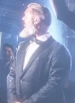 Hoffman standing beside Londra as his bodyguard.