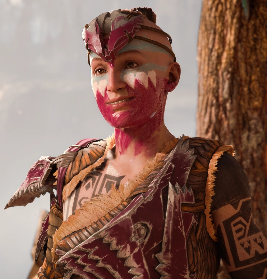 Kivva is the leader of the Ram Squad with Ezekko and Pivallo as her squad members. In defiance of Tekotteh's orders, they accompanied Marshal Kotallo to the Embassy. There they witnessed Aloy defeat Regalla's champion, with Kivva gambling that Aloy would emerge victor.[1]