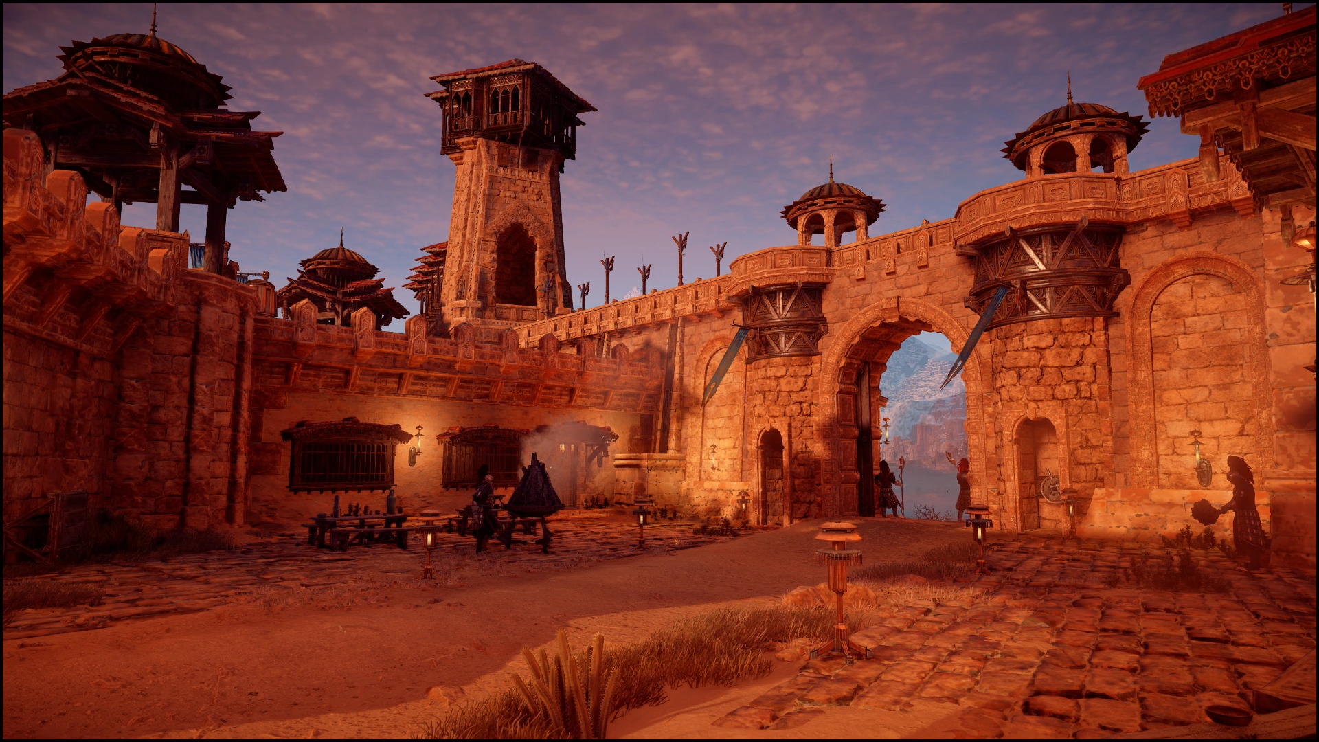 Like most Carja gates, Morning's Watch is constructed primary of sandstone with copper roofing, and has several watchtowers.