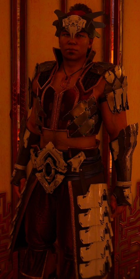 Palaved is a Carja hunter who holds the unofficial rank of Fledgling in the Hunters Lodge.[quote 1] He can be found standing near a pillar behind the bar in the back of the Lodge, near Malesh.