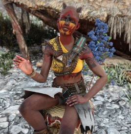 A Tenakth scout situated outside the western exit from the Base, Rukka recognized Aloy for her stand against Regalla and her rebels at the Embassy. She would go onto keep her informed of the latest happenings in the Desert Clan's territory, including an Oseram caravan, two rebel outposts in the north and south of the Shining Wastes, a rebel cap at the Hive, the Relic Ruins at the Dry Yearn, the Melee Pit in Scalding Spear, two Tenakth in the field of flowers at the Shining Wastes, and Korreh in Plainsong.
