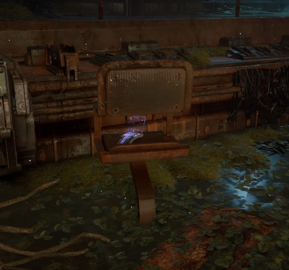 This datapoint is found on a ruined office chair in the control room of the dam, near the holographic interface indicating the status of the water flow.
