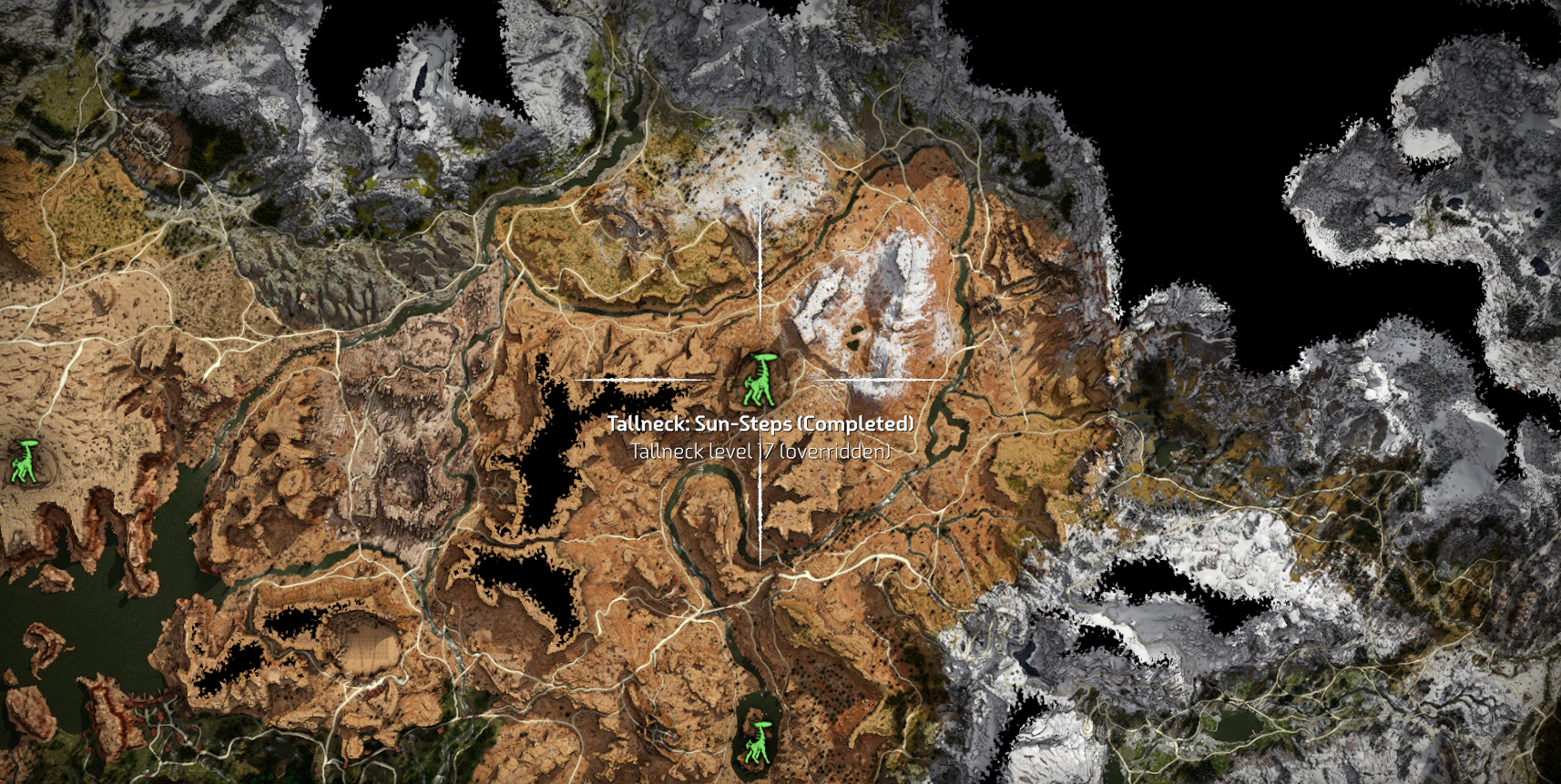 Tallneck: Sun-Steps is an activity in Horizon Zero Dawn. Overriding this Tallneck will reveal the entire northern portion of the map.